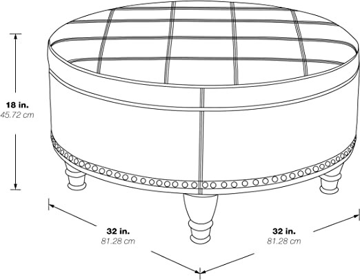 OSP Home Furnishings Augusta Round Storage Ottoman with Decorative Nail Head and Flip Cover, with Tray Finish, Turquoise Faux Leather